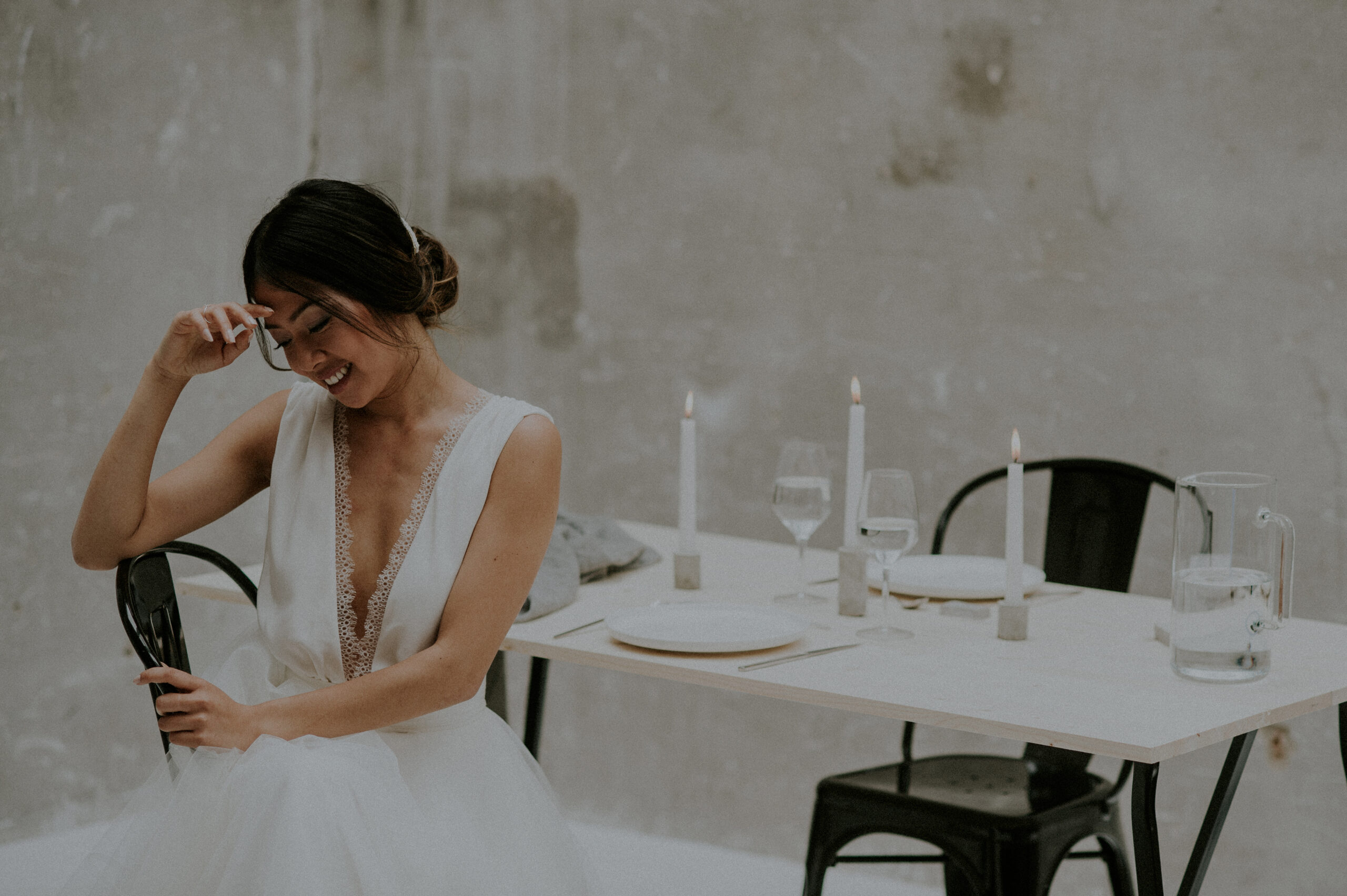 Alors que je suis sur le point d’une toute nouvelle collaboration avec la pétillante Madame Léon, retour en images sur notre premier shooting d’inspiration mariage, réalisé il y a quelques mois au studio Lucette. Un mail reçu et pour une fois les idées sortaient un peu des inspirations du moment où tout le monde fait comme tout le monde parce qu’on te fait croire que c’est l’inspi du moment justement, tu me suis ? Oui. Non. Peu importe, parce qu’avec Elle ce n’était clairement pas une proposition habituelle et le mail était franc, pro, naturel. J’ai dit oui à la seconde et c’est l’une des meilleures choses que j’ai pu faire ces derniers mois. Déjà parce que l’occasion parfaite de rencontrer quelques professionnels (dont je connaissais le nom mais n’avais ni la voix ni le visage) m’était offerte, mais en plus parce que ses promesses ont été tenues et que ce fut un très joli moment créa. Depuis ce fameux samedi chez Lucette, les semaines ont filé et les rencontres sont restées. J’ai fait la connaissance de gens comme je les aime, pros mais sans aucune prétention, qui aime leur métier et les gens. En attendant notre prochaine session shoot dont je ne manquerai pas de vous parler, voici les avant/pendant du shooting Minimal Concrete par Madame Léon et les Autres (à découvrir aussi dans l’édito du blog de Madame C).