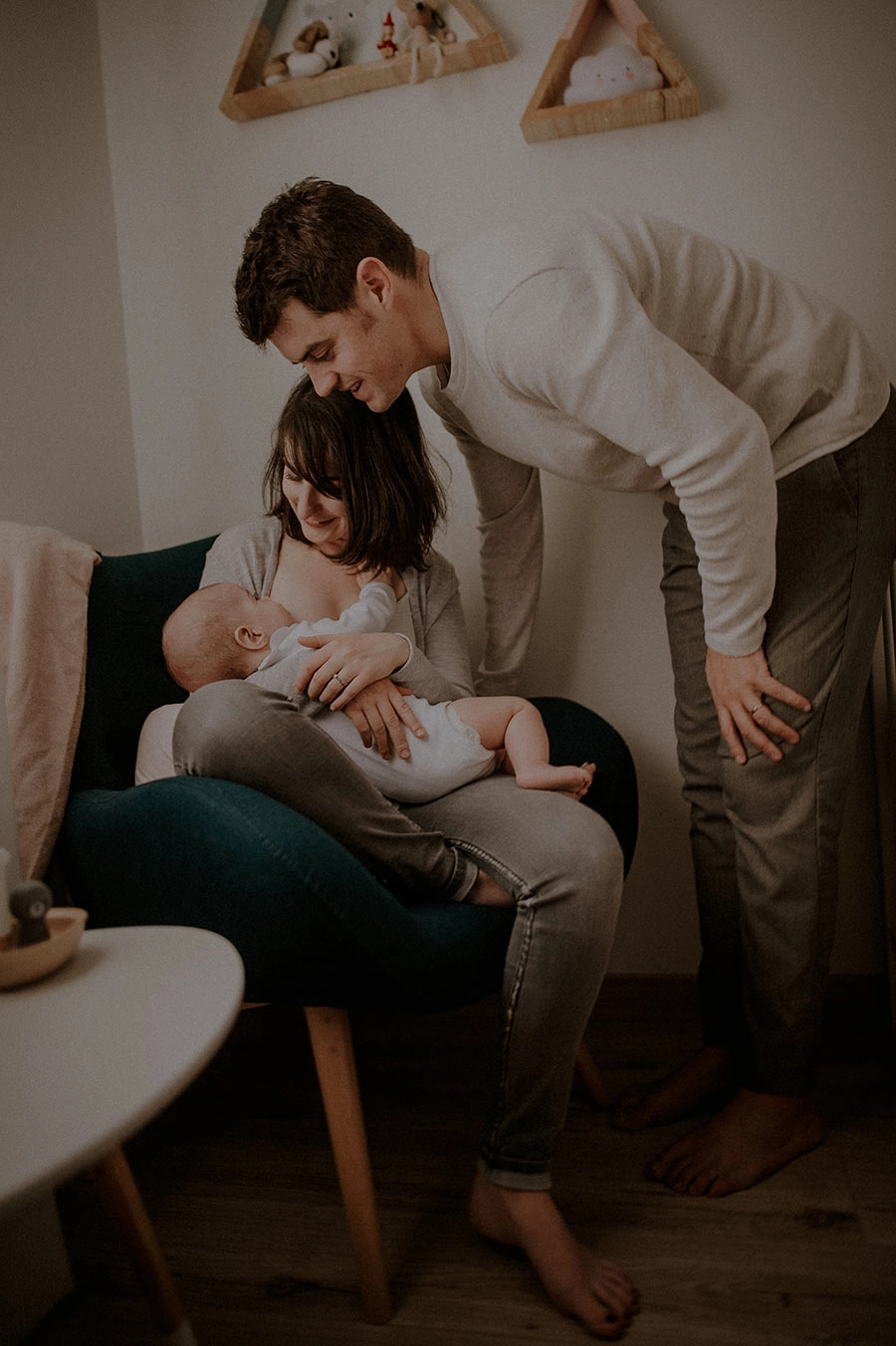Je n’aborde jamais une séance ventre rond comme je pourrais aborder une autre séance. Pour moi c’est une séance à part, un moment à part dans la vie du couple qui ne se dessine pas de la même façon qu’une autre séance. La photographie de grossesse c’est la photographie de l’intime. L’intime du couple, l’intime du corps, l’intime du soi dans lequelle je trouve toujours beaucoup d’inspirations et de tendresse aussi, pour le couple que je rencontre. Pour cette séance, c’est une rencontre de la tête et du coeur beaucoup, d’abord avec Lucie puis avec Arthur, son amoureux dont elle m’avait tant parlé… Ce moment avec eux je l’ai aimé pendant, puis après. Et me poser à nouveau sur notre moment, après tant de mois passés, (re)découvrir les photos de cet instant de plein été, je les savoure encore plus. Je les trouve beaux tous les deux, je les trouve vrais. Je trouve que Lucie porte en Elle quelque chose à part qui m’a plu dès notre rencontre. C’est la douceur et la force réunie en même temps. Chaque image, c’est beaucoup de confiance dans laquelle ils se sont laissés porter, rendant chaque image unique et tellement eux. C’est avec beaucoup de plaisir que je vous partage nos beaux souvenirs aujourd’hui, parce que ces images c’est eux évidemment, mais c’est tout mon moi photographique aussi*