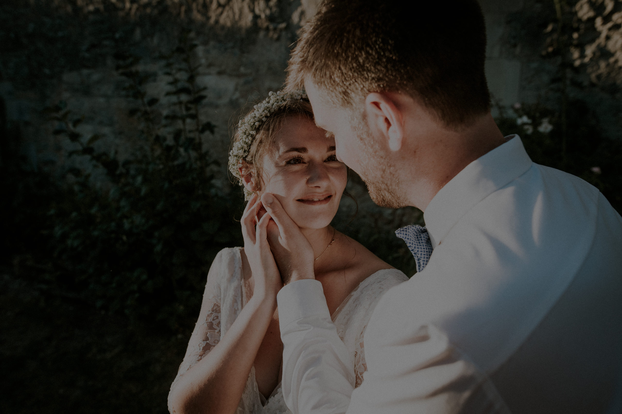 Nous avions donc rendez-vous avec les amoureux le matin dans un charmant hôtel de Dordogne pour des préparatifs feutrés au charme fou. La rencontre avec leurs témoins et la chaleur du moment. J’ai adoré voir Lucie dans ses moments fébriles d’excitation, inquiète des choses parfaites, sincère et franche. J’ai adoré le flegme, le charme et l’humour de Jonas qui nous a fait une confiance aveugle dès cette première rencontre parisienne. Départ pour la marie, départ pour le premier grand Oui et pour le second dans les jardins du château. Une cérémonie laïque portée dans leur deux langues maternelles, Français et Allemand, qui lui conférait un charme supplémentaire. Moment fort, intense, les mots de ceux que l’on aime qui font un bien fou et font exploser l’émotion et tout ça à capturer avec la plus grande des simplicités. J’ai tellement aimé les voir lâcher prise et s’éclater dans leur amour. Et cette sortie, cette suite et les surprises du cocktail. Un Jonas métamorphosé, une Lucie solaire et tous les bons moments autour.